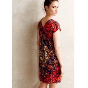Anthropologie Maeve Women’s Red Medallion Mini Shift Dress Size M Casual Boho