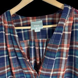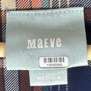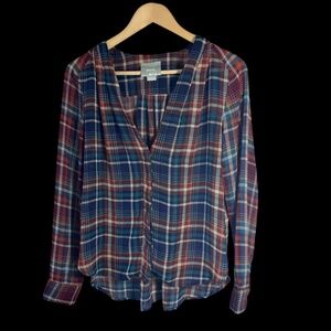 Anthropologie Maeve Women's Sheer Split Neck Multicolor Plaid Blouse Sz M