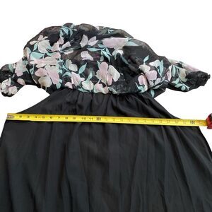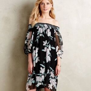 Anthropologie Maeve XS Paola Silk Floral Mini Dress Black Flowy Long Sleeve Boho