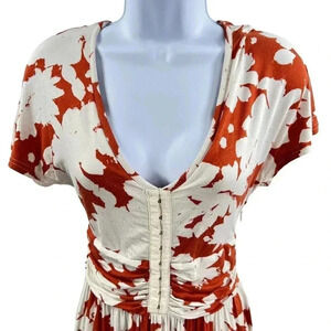 Anthropologie Maeve XS Summer Breeze Orange Off White Floral Dress Ruched Waist