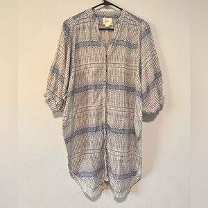 Anthropologie Maeve Yarn Dyed Blue White Boho Button Down Lena Tunic