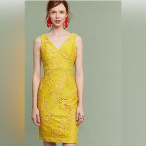 Anthropologie Maeve Yellow Gardenia Crochet Sleeveless V-Neck Lace Column Dress