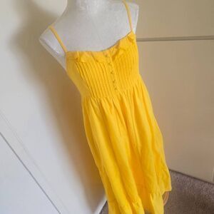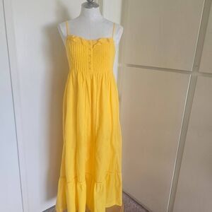 Anthropologie Maeve Yellow Pintuck Button Front Smocked Back Maxi Dress , EUC, S