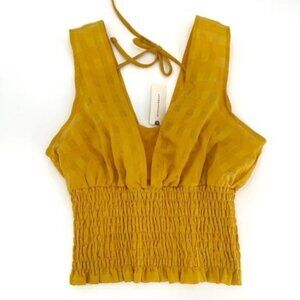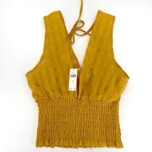 Anthropologie Maeve Yellow Smocked Overlay Plunging Cropped Medium Tank Top NWT