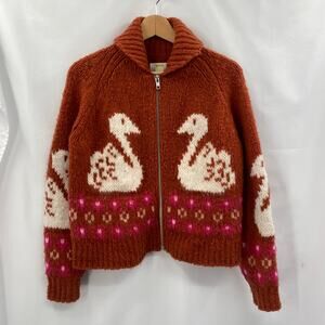Anthropologie Maeve Zip-Front Swan Burnt Orange Cardigan Sweater