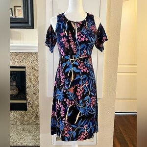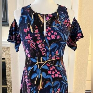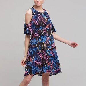Anthropologie Maeve blue floral Elia Cold Shoulder Dress Size 4