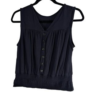 Anthropologie Maeve cropped back button sleeveless top navy M medium