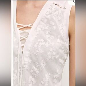 Beautiful tops by Maeve from Anthropologie. Features embroidery on the front with a tie detail and a plain back. It also has an inner liner. Size 4P. Color is white.