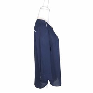Anthropologie Maeve monogram E elephant blouse top small navy blbue