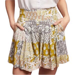 Anthropologie Maeve patchwork multicolor high rise shorts size medium. The style is made to look like a skirt/skort Multimedia style excellent preowned condition see photos for measurements, fabric content and details.