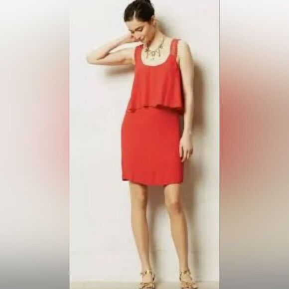 Anthropologie Maeve red dress, crochet spaghetti straps, layered top, sz2