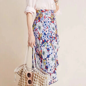 Anthropologie Maeve size XS Sybil Floral wrap skirt ruffle trim spring Easter