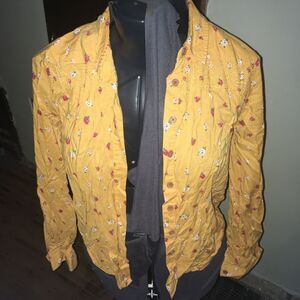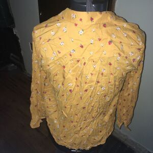Anthropologie Maeve boho, business casual, colorful, mustard yellow floral shirt. Smocked shoulders. Button down. Approximately 20 inches from armpit to armpit, 22 inches long. From a pet and smoke free house. Happy to bundle!
