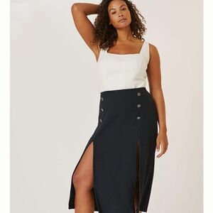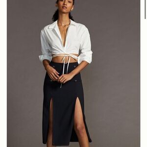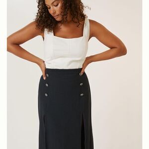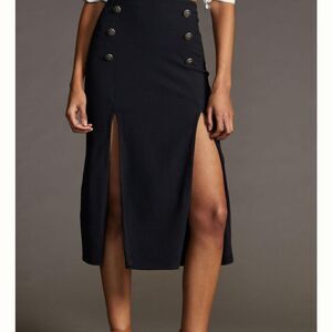 Anthropologie Maeve Black Gunmetal Anchor Button Duel Slit Long Sailor Skirt