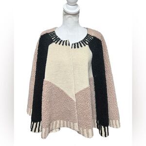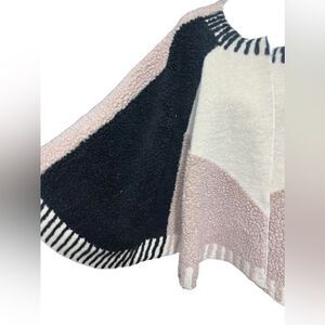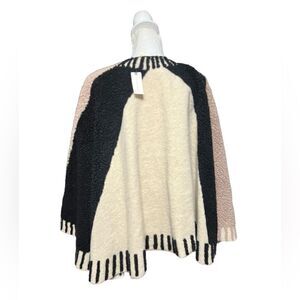This Anthropologie Maeve Dusk & Dawn Capelet Cape is a versatile addition to any wardrobe. The mid-length cape is made of a wool, acrylic, and polyester blend in multicolor. It features an open front and a relaxed fit, making it perfect for travel, casual outings, workwear, or business attire.