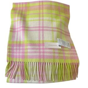 Anthropologie Maeve Pink Yellow Plaid Wool Scarf, New with Tags