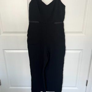 Adorable black jumpsuit by Anthropologie! Like new, has beautiful detailing around the waist, size 14. Does have stretch.