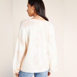 Anthropologie Maggie Bell Sleeve Boxy Cut V Neck Oversized Tie Dye Sweater Pink White