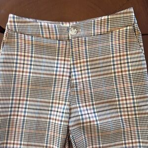 These Anthropologie dress pants feature a sophisticated plaid pattern in brown and tan, perfect for elevating your wardrobe.