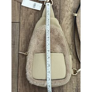 Anthropologie Mali + Lili Gwen Faux Fur Woven Sling/Crossbody Bag Tan/Beige NWT