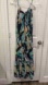 Chic maxi dress with bold leaf pattern. Features black, green, and tan hues.