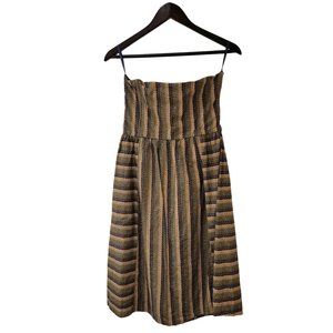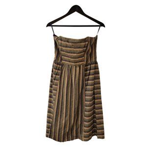 Anthropologie Maple Chloroform Strapless Dress Size 10 Green Blue Tan Boho Chic