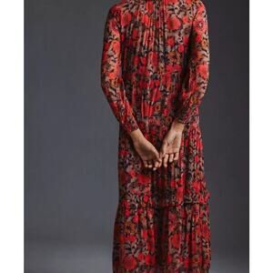 Anthropologie Marais Printed Chiffon Maxi Dress Floral Printed Dress Size MP