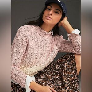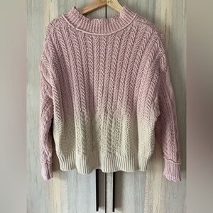 ANTHROPOLOGIE Marci Ombre Dip Dye Cable Knit Pink & Cream Sweater