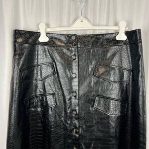 Anthropologie Mare Mare Black Faux Leather Crocodile Skirt Plus 2X NWOT
