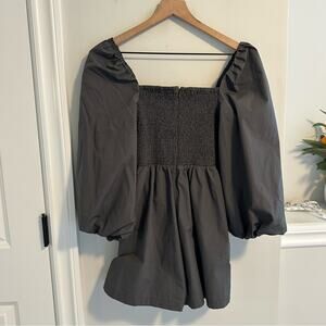 I love this super flattering Anthropologie Mare Mare gray cotton square neck long sleeve romper/one piece