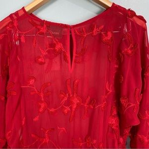 Anthropologie Mare Mare Floral Textured Red Dress FLAWED
