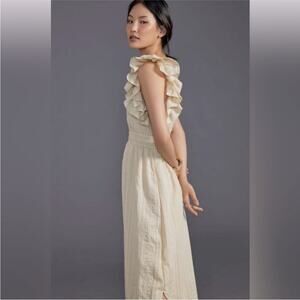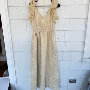 Anthropologie Mare Mare Flutter Sleeve Maxi Dress V-Neck Cream Neutral size XS