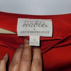 Anthropologie Mare Mare Red Puff Sleeve One Shoulder Tie Waist Blouse Sz M