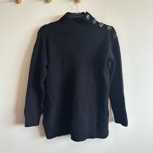 Anthropologie Margarita Button Shoulder Tunic Black Sweater Size Small