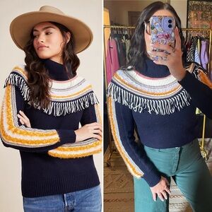 Anthropologie Margherita Nordic Fringe Turtleneck Sweater