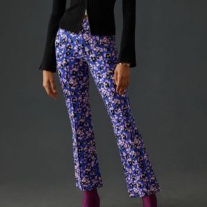 Anthropologie Margot Kick Flare Purple Animal Motif Pants, NWT