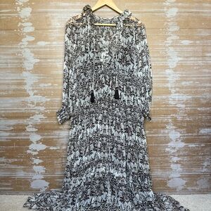 Anthropologie Marias Printed Chiffon Maxi Dress Neutral Boho Preppy Womens XS