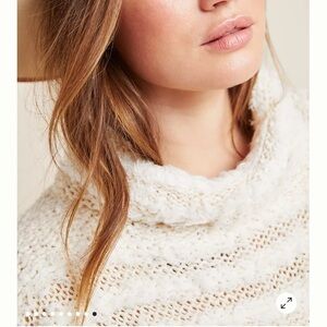 Anthropologie Marilyn Poncho Sweater Ivory White Fringe Mock Neck Size XS / S