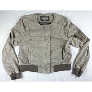 Anthropologie Marrakech Bibiana Bomber Jacket Beige Microsuede Zip Front Size M