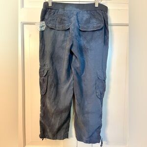Anthropologie Marrakech Julia Tencel Linen Cargo Capri Pants Blue Sz 25 NWOT