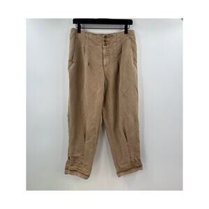 Anthropologie Marrakech Tan Pleated Linen Blend Cropped Pant High Rise Size 31