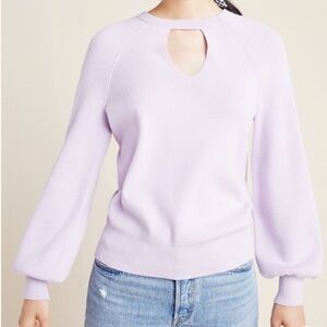 Anthropologie Mary Knit Pullover Keyhole Balloon Sleeve Sweater Light Lavender Purple