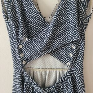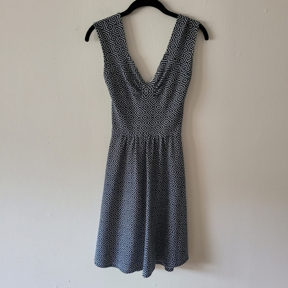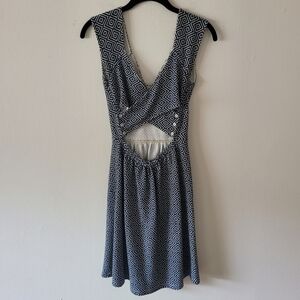 Anthropologie Matilde Dress Navy & White Criss Cross Open Back Fit & Flare Sz 2