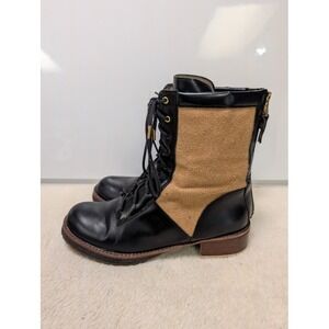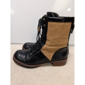 Anthropologie Matt Bernson Flannel Leather Boots Womens sz 8 Boho Lace Up