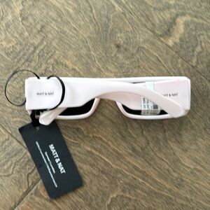 Anthropologie Matt & Nat Sawai 2 Lily Recycled Rectangular Sunglasses New With Tags. These sunglasses are a pretty light pink color with a rectangular shape. They are a shiny solid frame and temples with polarized lens. Dimensions of sunglasses in MM: 57/19-137 (width of lens/distance between lens/temple length). 100% UV Protection. Comes with a green recycled cleaning cloth and a green recycled PVB sunglasses pouch. Super cute 🩷