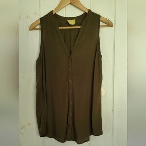 Anthropologie Mauve Rayon Button-front Split Neck Tank