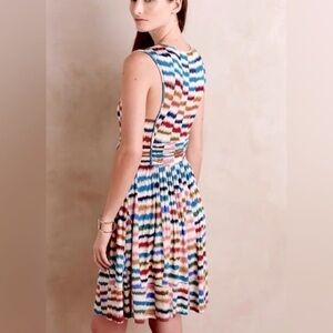 Anthropologie Mauve Sennebec Colorful, A-Line, Keyhole Above-Knee Sleeveless Midi Dress with Pockets and Slight Front Gathering to Highlight the Waist. Very soft, stretchy, comfy, and figure-flattering statement piece.