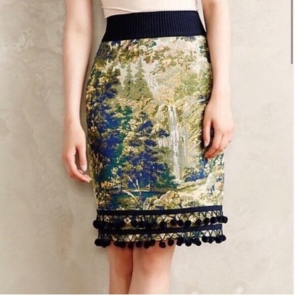 Anthropologie Mauve Tapesrty Pom Pom Pencil Skirt Size 4