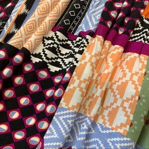 Anthropologie Mauve Womans Top XS Patchwork Print Short Puff Sleeves Boho Light