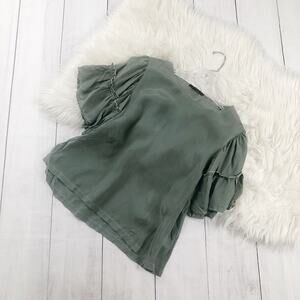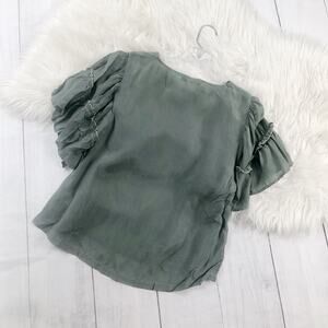 🆕 Anthropologie Maven West Green Edrae Flutter Sleeve Top XSP NEW $158